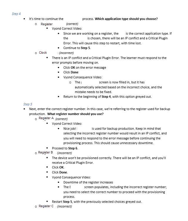 This approach kept conversations grounded in what actually happens in the restaurants, including common missteps, how devices respond, and what an employee would see and do next. Not every decision led to a fully separate path. Some mistakes would be quickly resolved and return learners to a previous step, while others led to additional decision points and extended troubleshooting paths.